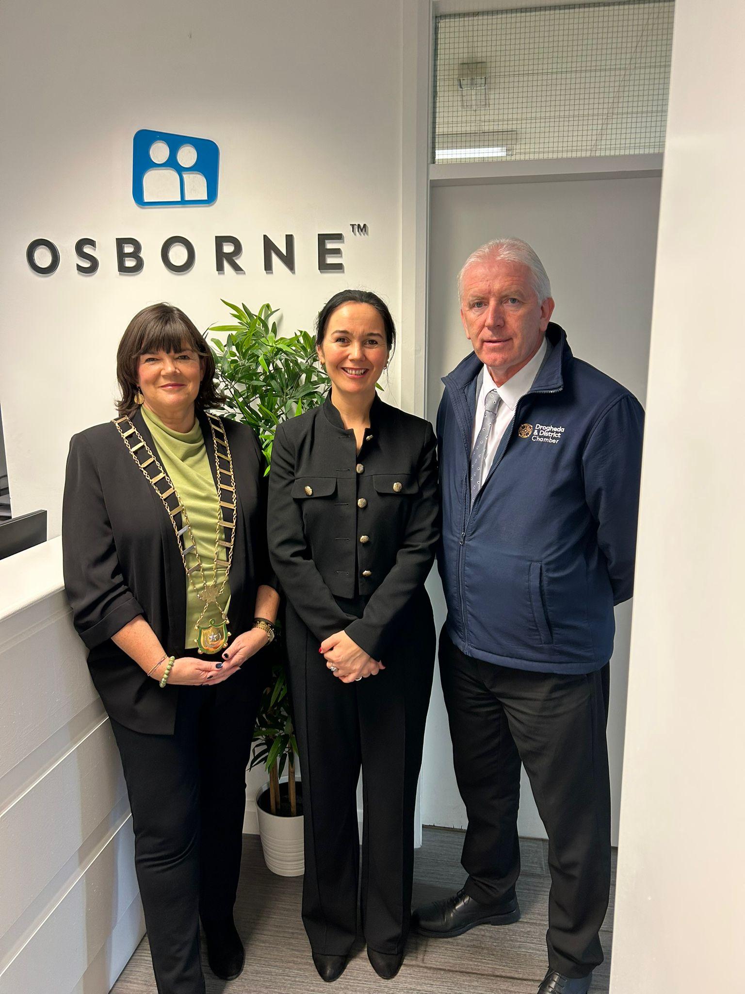(Pictured left to right: Michelle Hall, Drogheda Lord Mayor, Shóna McManus, Osborne CEO/Owner, Hubert Murphy, Drogheda & District CEO)